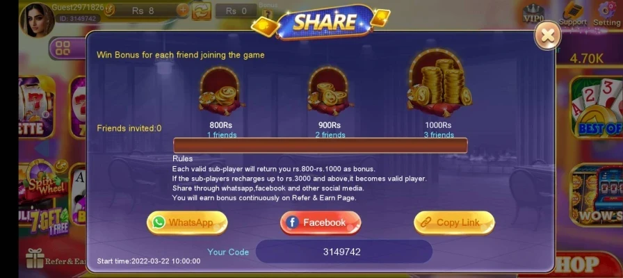 Players get weekly bonuses for staying active. The referral program allows you to earn commissions every time your friends join and play.