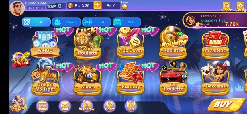 Players can place bets in Teen Patti, Dragon vs Tiger, and other games to win coins that can be converted into real cash.